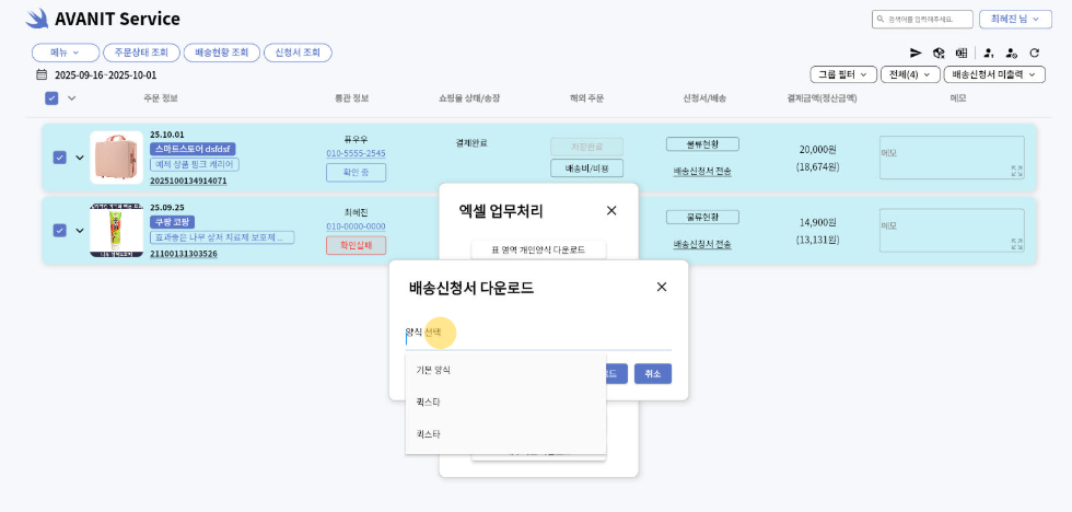 배대지마다 배대지 샘플양식으로만 업로드해야 하는 사이트들이 있습니다.