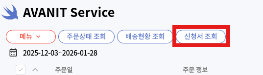 상단의 [신청서조회] 버튼을 클릭하면