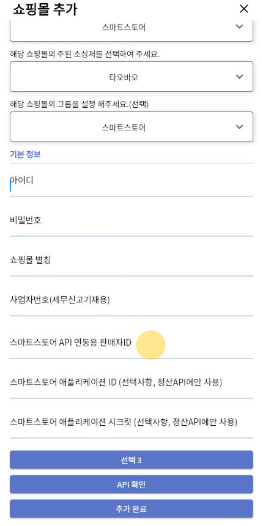 ※ 상품 API, 주문 API 대행사는 5개까지 각각 선택이 가능합니다.