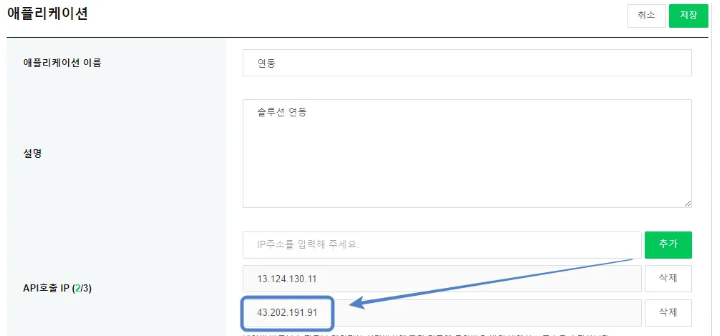 – 개인 API를 타 프로그램과 같이 사용시, 타 프로그램 IP 주소 확인 후 같이 추가해주시면 됩니다.
